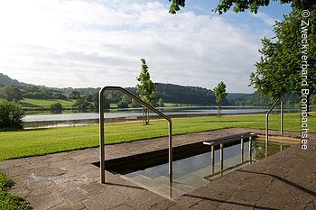 Am idyllisch gelegenen Hahnenkammsee, der ruhig und beschaulich zwischen den grünen Hügeln des Hahnenkamms, etwa einen Kilometer südlich von Hechlingen, liegt, steht, direkt am Seeufer, eine Kneippanlage mit herrlichem Blick über den Hahnenkammsee zur Verfügung.