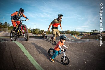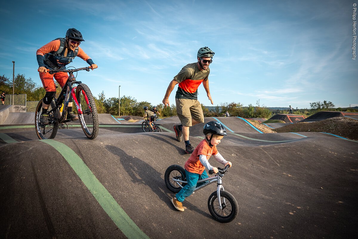 Gedacht ist das Ganze in erster Linie fürs Fahrrad, es geht aber auch mit anderen Sportgeräten: Ein Pumptrack kann zum Beispiel mit dem Skate- oder Longboard, Inlineskates, Scootern oder sogar mit dem Laufrad befahren werden.