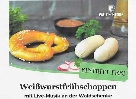 Frühschoppen mit Weißwurstfrühstück und Live-Musik an der Waldschenke Sonntags vom 24. Mai bis 13. September 2026 von 11:00 – 13:00 Uhr; Nur bei schönem Wetter! Für Sie zum Frühschoppen:Traditionelles Weißwurstfrühstück: Beginnen Sie den Tag mit einem köstlichen Weißwurstfrühstück und frisch gezapftem Spalter Bier., Fränkische Atmosphäre: Erleben Sie die ...