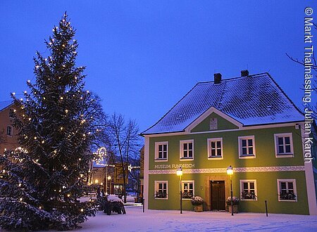 Am 3. Adventssonntag sind die Bläser und Bläserinnen der Region, vereint zum Bezirksposaunenchor, am weihnachtlich geschmückten Thalmässinger Marktplatz zu hören.