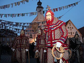 Umzug historischer Brauchtumsgruppen mit Musikkapellen durch die Gredinger Altstadt