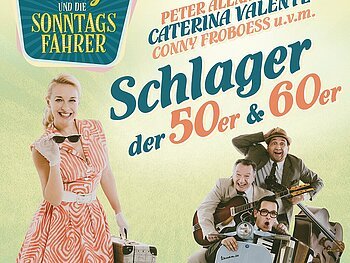 Erleben Sie die großen Schlager von Peter Alexander, Caterina Valente, Conny Froboess, Peter Kraus und vielen anderen. Mit authentischer Instrumentierung, originalgetreuen Arrangements und stilechter Kleidung lassen die vier Musiker die wunderbare Musik dieser großen Künstler wieder aufleben. Spannende und witzige Zwischenmoderationen runden den Auftritt von CONNY & die SONNTAGSFAHRER zu einem unvergesslichen Abend ab. Authentisch, voller Spielfreude und mit viel Liebe zum Original.