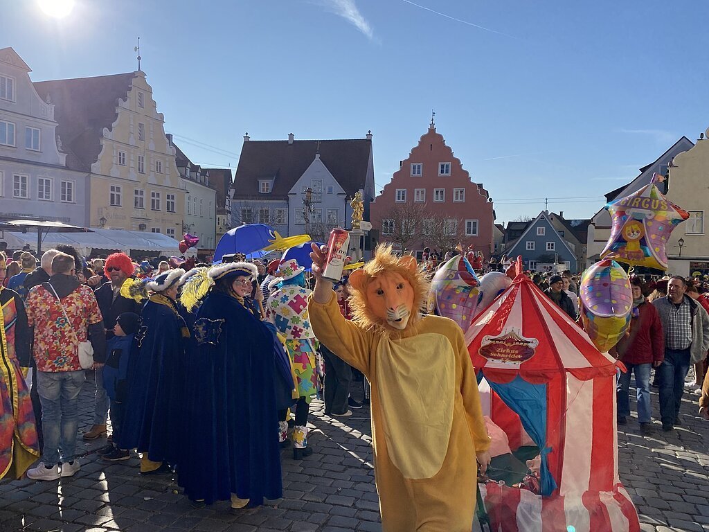 Die Faschingsgesellschaft Wemdosia zieht mit zahlreichen Faschingsbegeisterten entlang barocker und historischer Bürgerhäuser durch Wemdings Altstadt. Besonderes Markenzeichen des Gaudiwurms ist die überwiegende Mehrheit an Fußgruppen und die - wenn überhaupt - nur kleinen Fahrzeuge. Über 1.400 teilnehmende Faschingsnarren, Vereine und Musikkapellen aus der Region freuen sich mit: "Helau hela Wemdosia!".