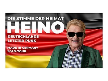 Erleben Sie Deutschlands musikalische Legende HEINO 2026 auf großer Konzert-Hit-Tournee! Unter dem Titel „HEINO – Made in Germany“ bringt der Kult-Star seine größten Hits auf die Bühne und begeistert mit einer Mischung aus Schlager- und Volksliedern, sowie einigen musikalischen Überraschungen.