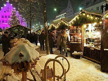 Auf dem Rathaus- und vor dem Münsterplatz öffnet der Neumarkter Weihnachtsmarkt die Türen seiner liebevoll dekorierten Buden. Zu den zahlreichen Besonderheiten des heimeligen Marktes gehören eine offene Feuerstelle, ein stimmungsvolles Musikprogramm und das urige Waldhütten-Flair der hölzernen Unterstände. Donnerstags bis sonntags ergänzt ein Kunsthandwerkermarkt das weihnachtliche Angebot.