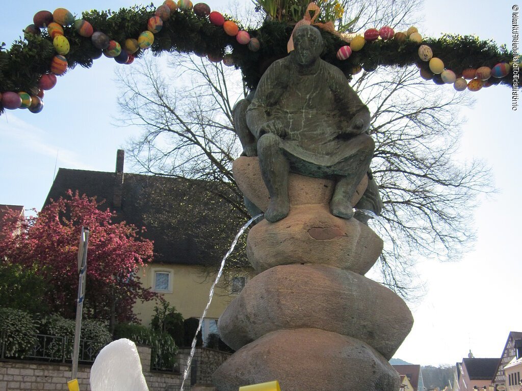 Schon traditionell wird am Ostersonntag in Pleinfeld der Müllerbrunnen vor dem Rathaus in seinem österlichen Gewand in Betrieb genommen.