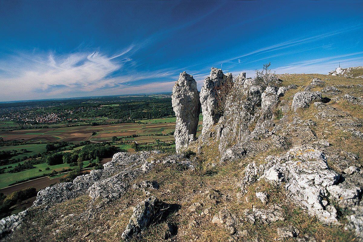Zu einem herrlichen Auf und Ab zwischen markanten Felsen, herrschaftlichen Burgen und Flusstälern lädt diese 62 Kilometer lange Etappe des Frankenweges – vom Rennsteig zur Schwäbischen Alb ein. Zweimal entführt er dabei sogar in die Erde: In der Binghöhle und der Teufelshöhle gruppieren sich Tropfsteine zu phantastischen Gebilden.